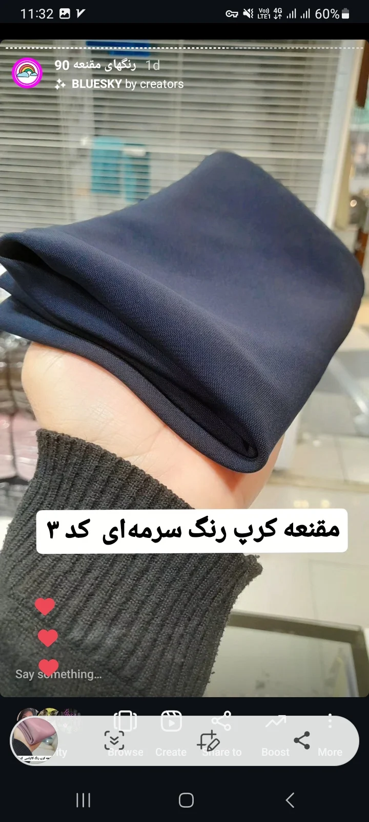 رنگبندیهای قد 90 مقنعه کرپ-کد409